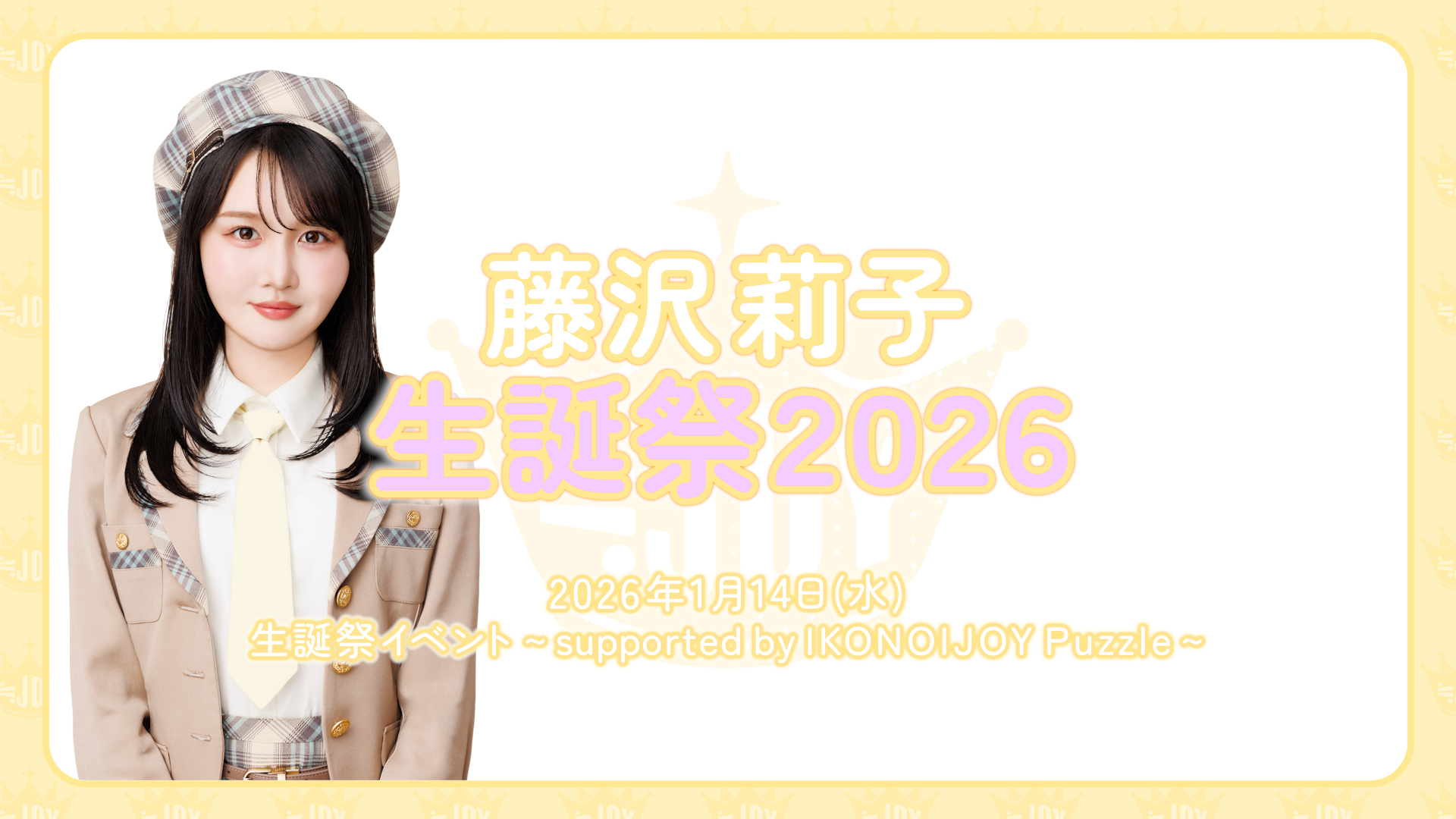 1月生誕祭イベントで藤沢莉子が書いた「今年の目標」色紙を≒JOY Official Fan Club会員様の中から抽選で1名様にプレゼントいたします!
