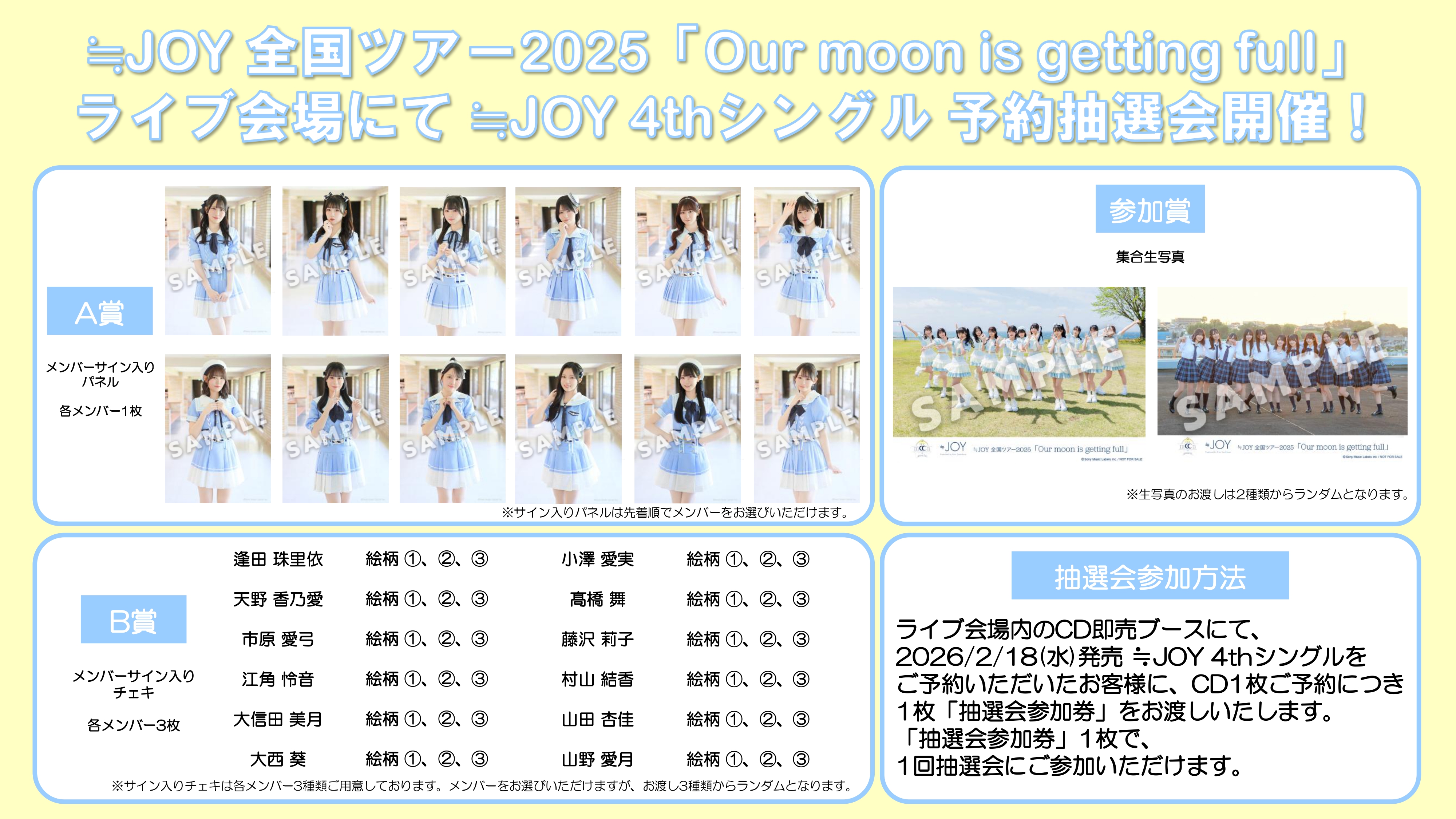 ≒JOY 全国ツアー2025「Our moon is getting full」ライブ会場にて、≒JOY CD予約抽選会開催決定!