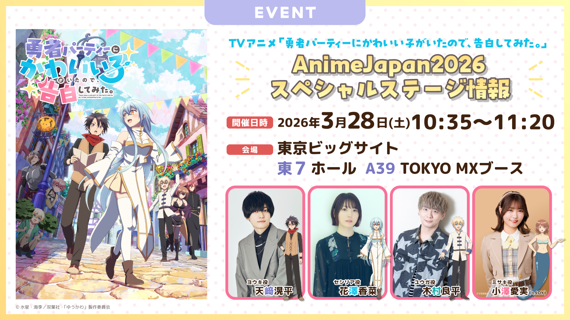 「AnimeJapan 2026」TOKYO MXブースにて、TVアニメ『勇者パーティーにかわいい⼦がいたので、告⽩してみた。』ステージイベントの開催が決定しました!